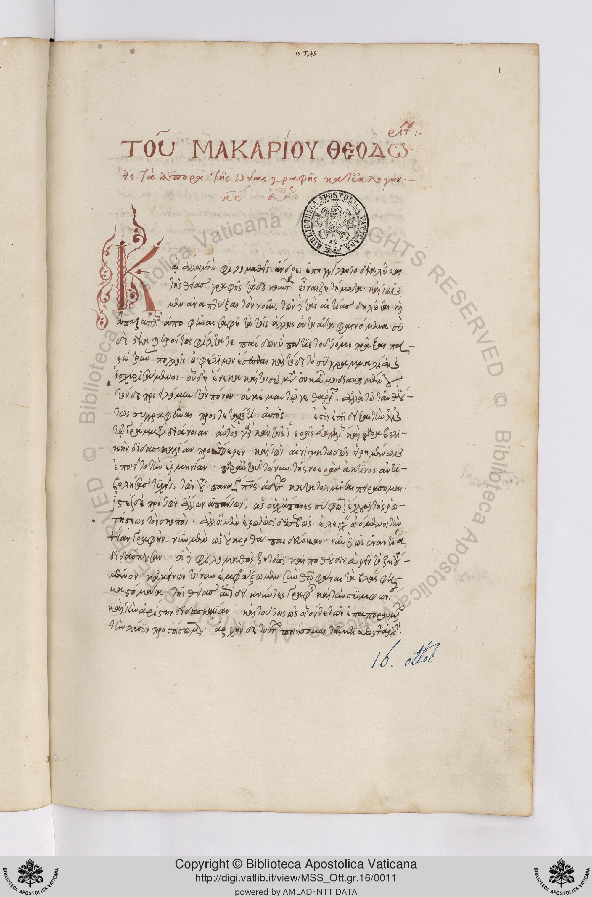 Index of /LUCRARI PE TEME/Biblioteca Vaticana/colectii/COLECTII GRECESTI/Ott. gr. (348)/MSS_Ott.gr.16